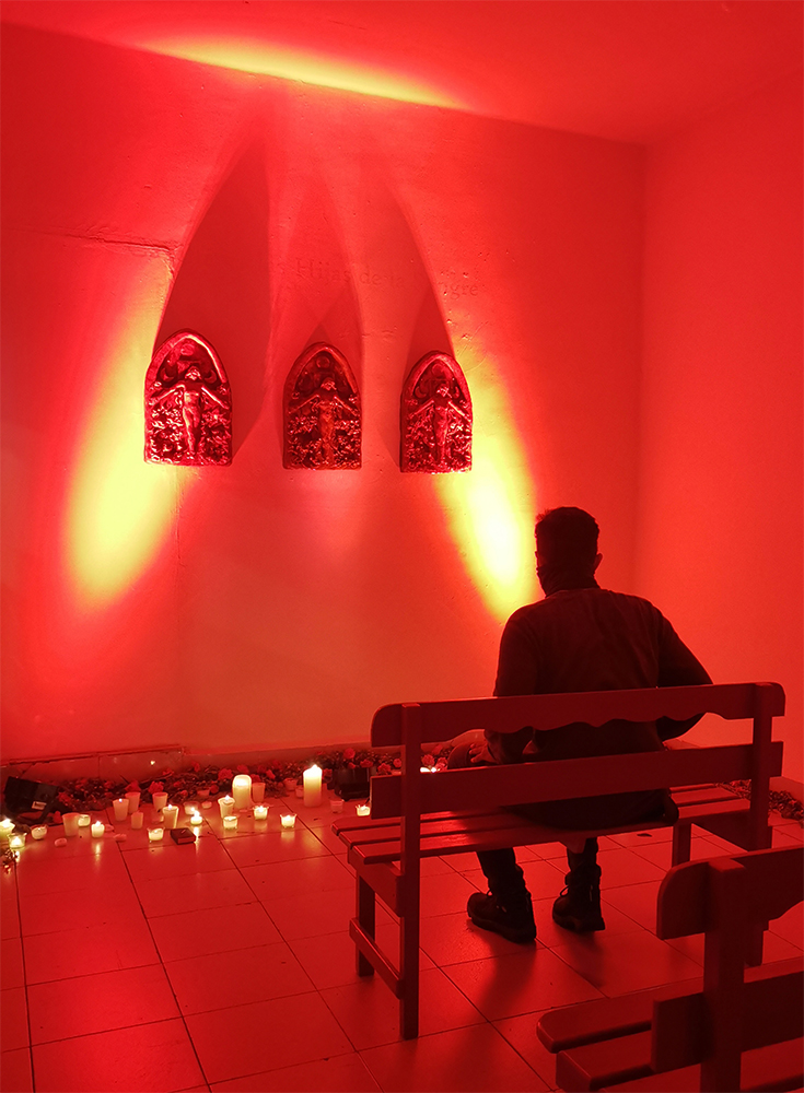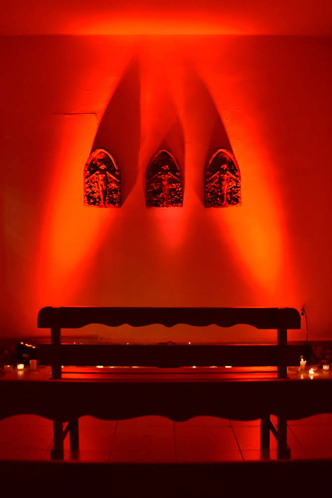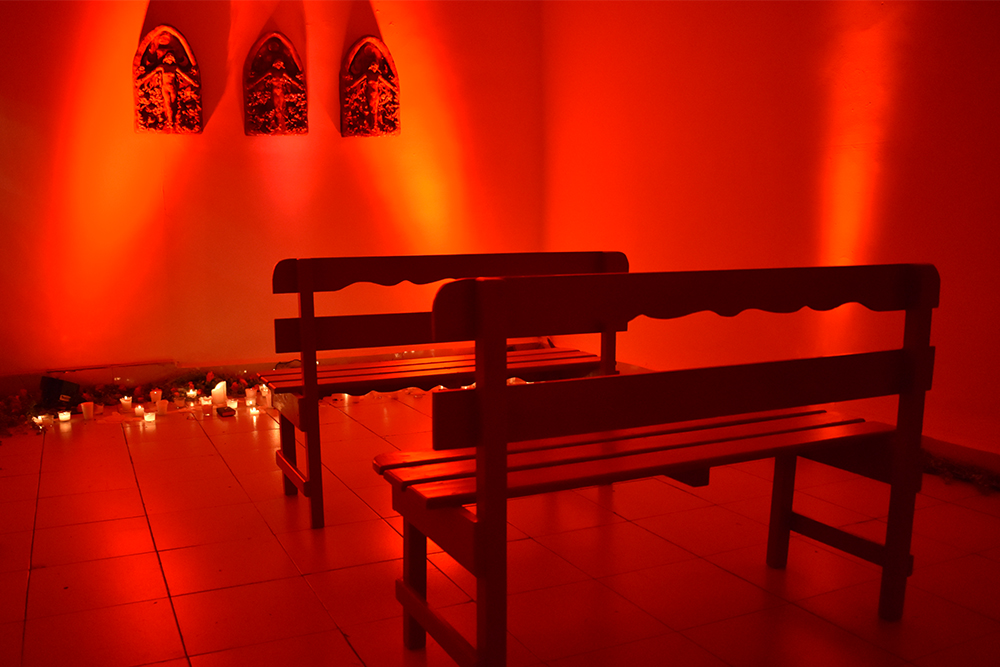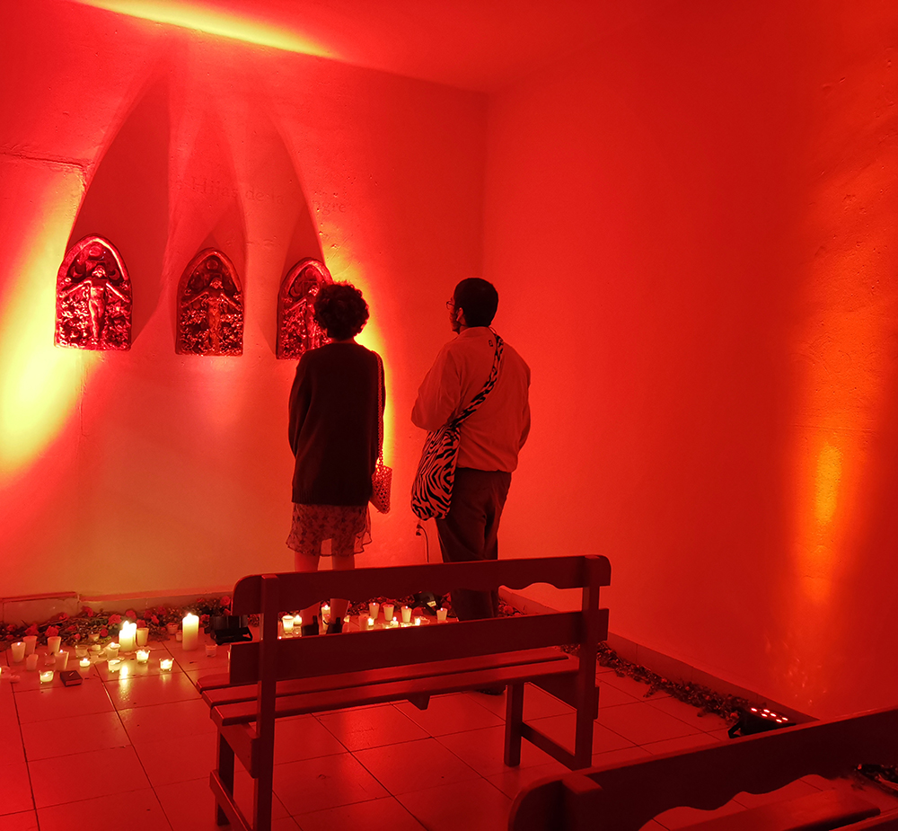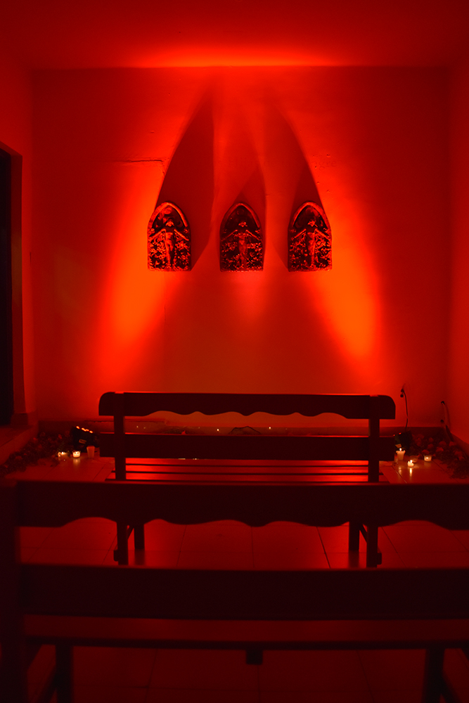 En la Capilla de las Hijas de la Sangre, las Hijas son la adveración que vela por dolencias, injusticias, éxitos y placeres relacionados con la mujer y lo femenino. La capilla es un espacio de culto donde puedes explorar tu relación espiritual con ello.